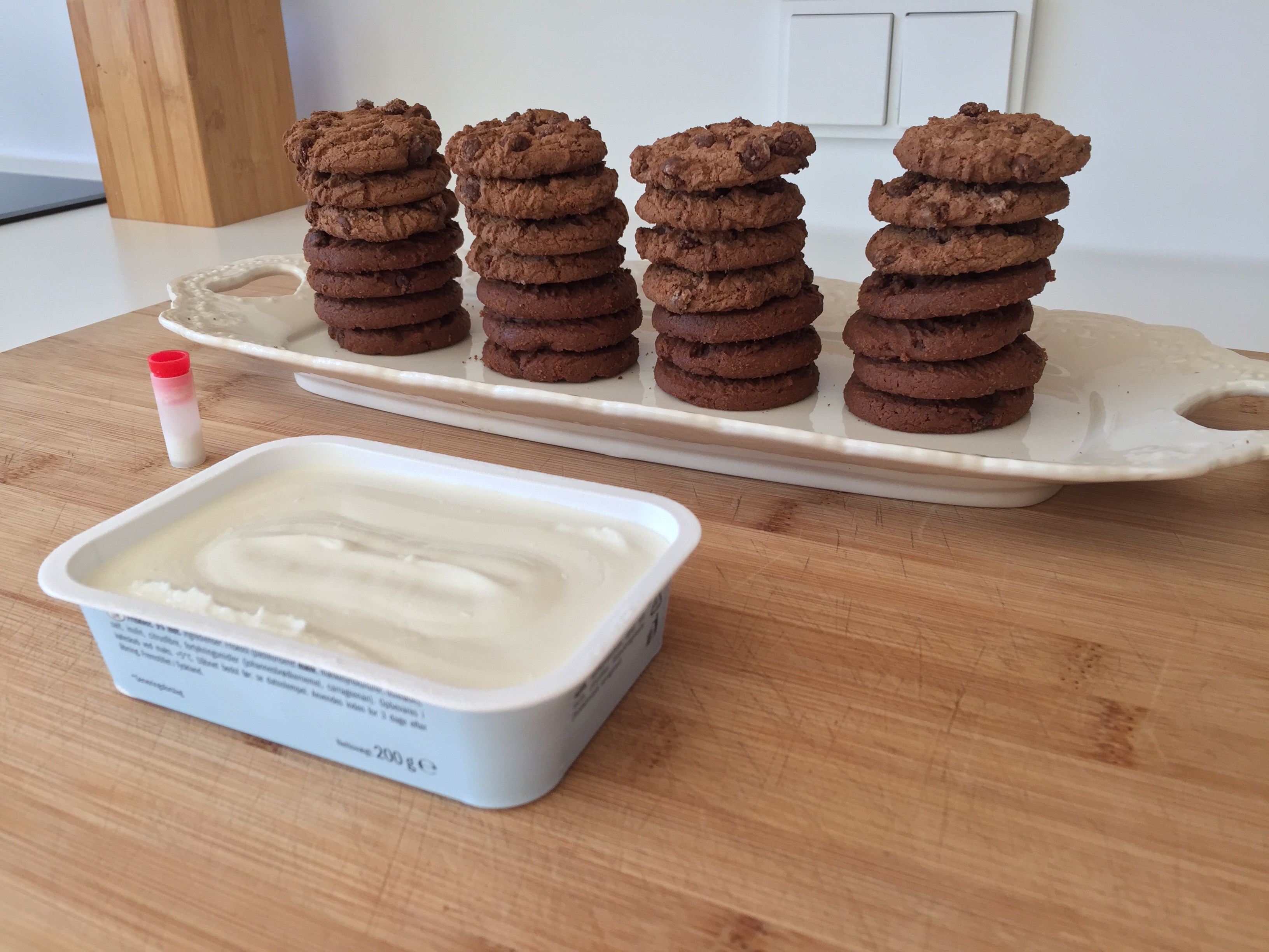 - In a medium sized bowl bring the heavy whipping cream and the biscuits and mix them together with a spoon (use your hands if possible, for a quicker and easier result)
